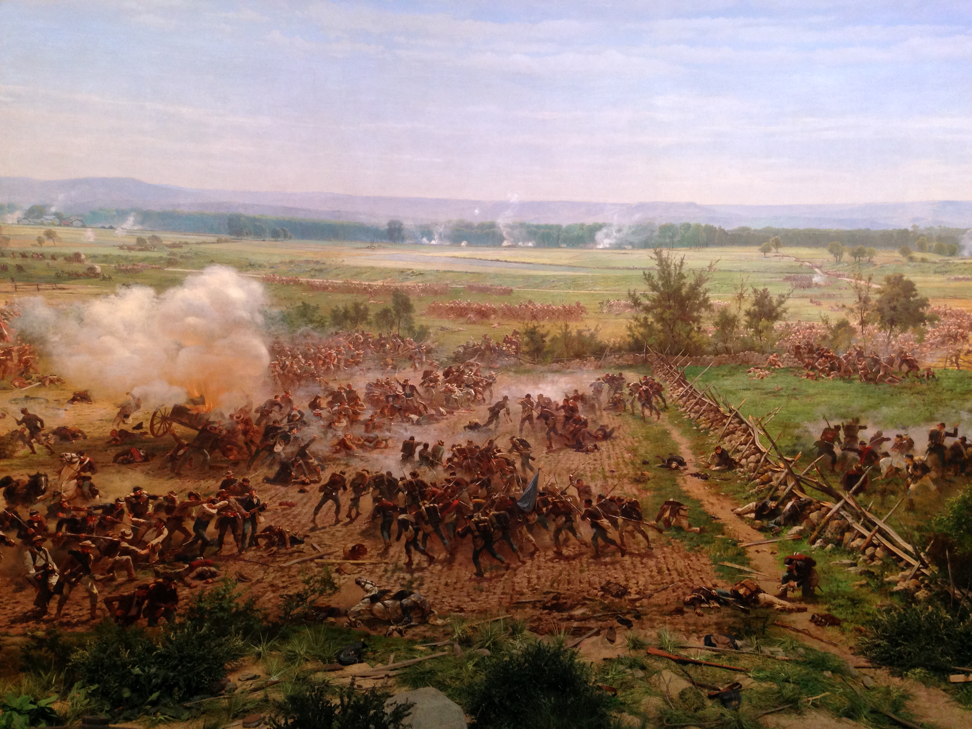 Gettysburg, my favorite battlefieldMy love affair with the Civil War began with a question to my Meme. I must’ve been 7 or 8. I can’t remember the exact question, but I remember Meme and Pawpan were sitting in their respective chairs in the living room when I asked. She got up and pulled the “C” (I think it was, it may have been “G”) volume of the World Book Encyclopedia from the shelf and opened it to the Civil War section. On the left hand side, covering most of the page, was a segment of Phillippoteaux’s Gettysburg Cyclorama painting.