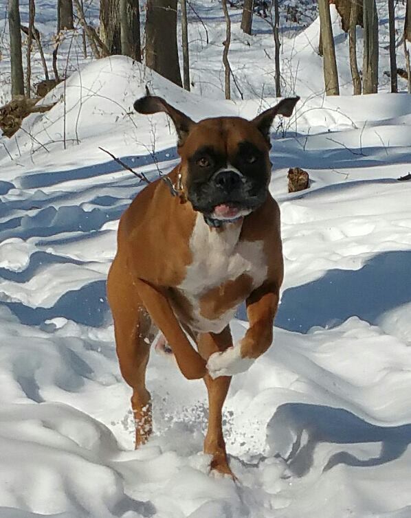 George and I decided to get a dog just about 5 years ago now. And quickly decided on a Boxer because her Stepfather, Alec, had always spoken highly of them. So, being novices and not really knowing any better, we searched on a website and picked him from a photo. We paid for him and met someone in Harrisburg, in a park, to make the exchange.
