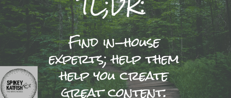 Photo by Rita Morais on Unsplash I stumbled across a blog post by Chris Riley a few weeks ago. The main point of the post: experts shouldn’t be afraid to write what they know about and businesses shouldn’t be afraid to use content written by in-house experts. It’s a good post, check it out: Why Non-Writers Often Produce…